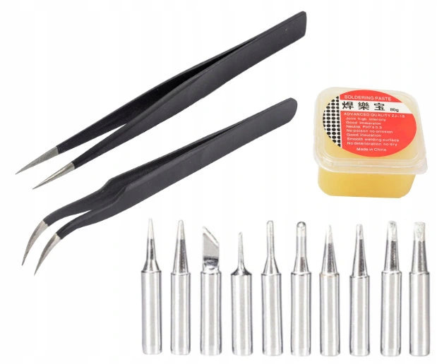 DODATKI Pasta lutownicza Pęsety Komplet grotów 900M