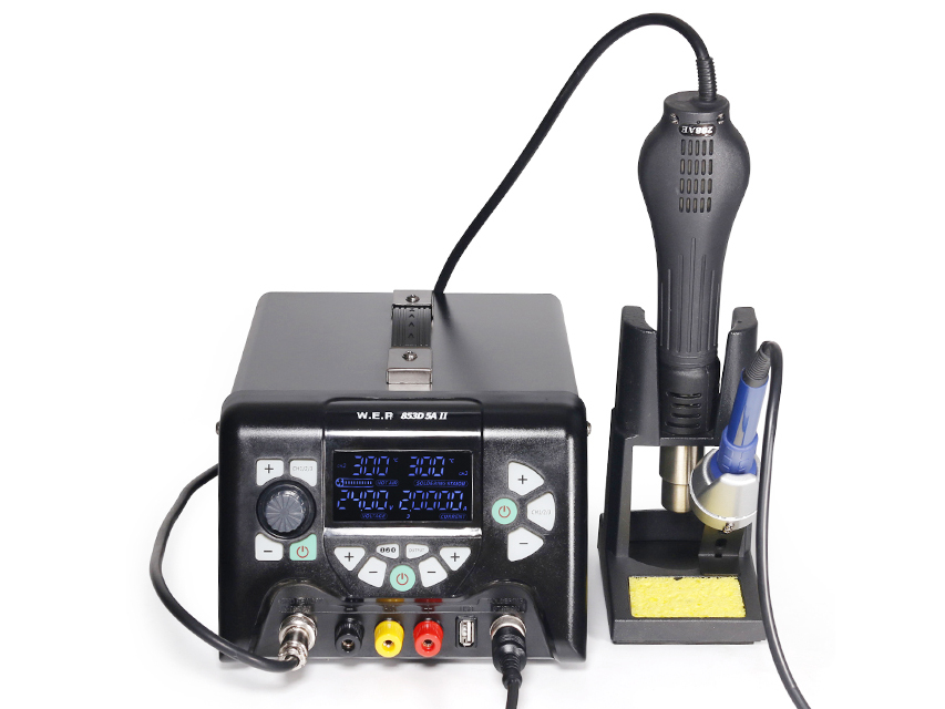 Stacja lutownicza WEP 853D 5A II to stacja lutownicza 3w1 na: