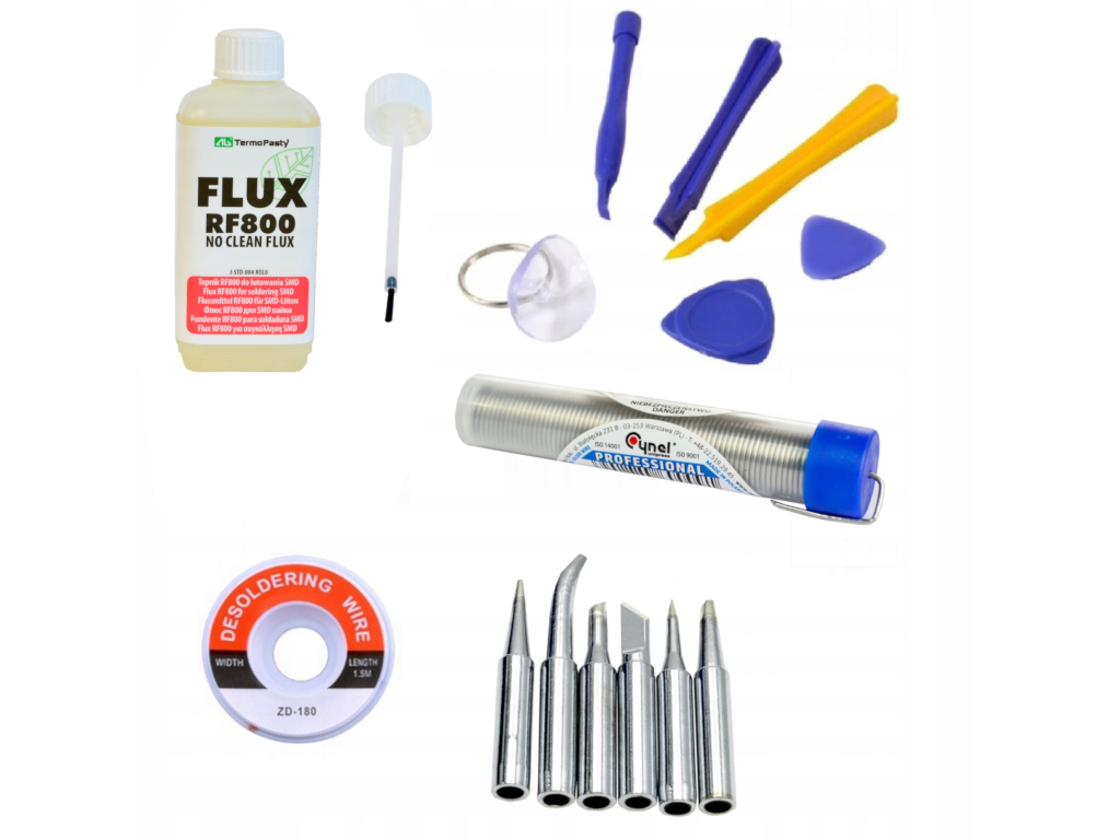 Zestaw dla elektroników groty 900M otwieracze cyna topnik plecionkaCo w komplecie: