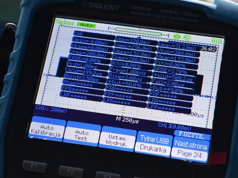 - Ekran LCD TFT 320x234 5.7" (jak w standardowych oscyloskopach stacjonarnych)