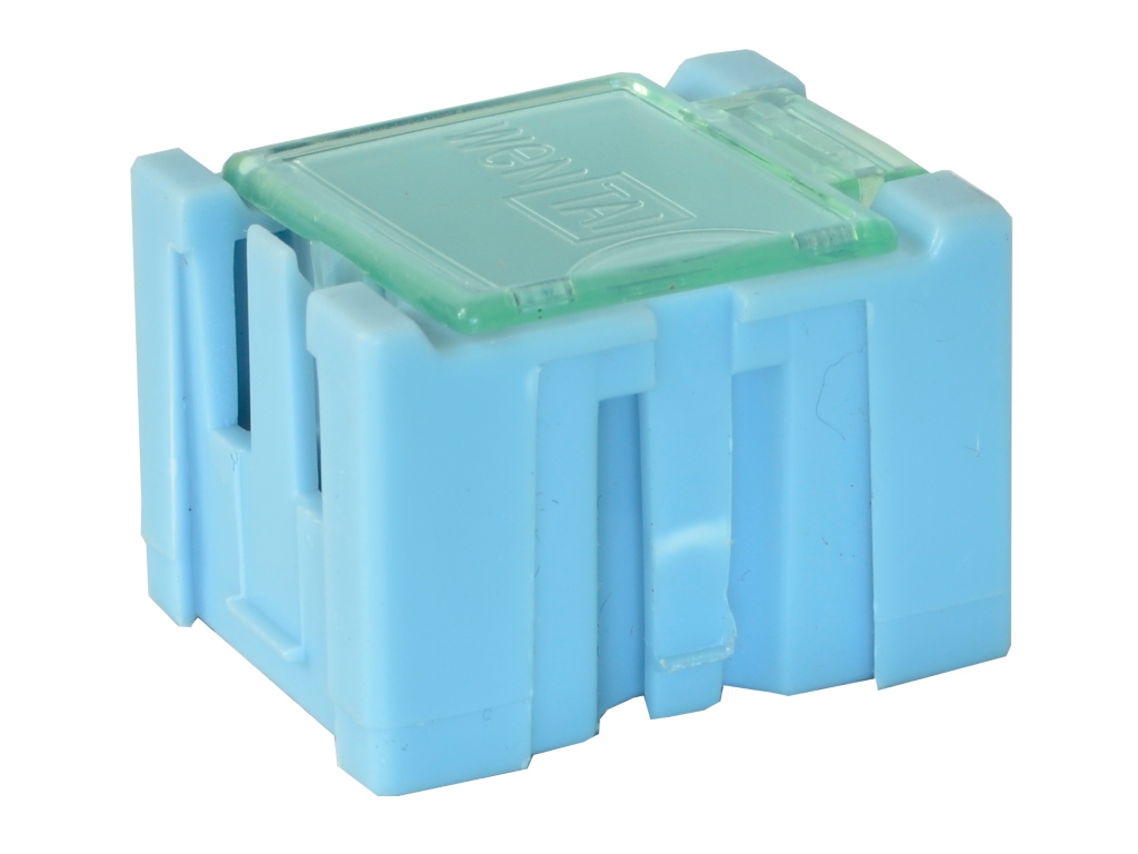 Plastikowe pudełko z zamykaniem z możliwością łączenia w grupy.
