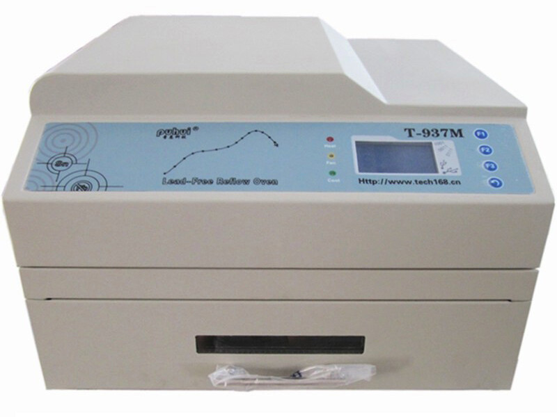 Piec T-937M do lutowania rozpływowego elementów SMD i BGA, jest sterowany mikroprocesorowo. Piec może pracować samodzielnie lub możemy go sterować komputerem PC. Cały proces jest łatwy i przebiega w pełni automatycznie, dzięki kontroli poprzez mikrokomputer. Konstrukcja pieca umożliwia uzyskanie dokładnej jednolitej temperatury, co wpływa na jakość procesu lutowniczego. Urządzenie wykorzystuje potężny przetwornik podczerwieni i obieg gorącego powietrza, dlatego proces lutowniczy przebiega bardzo równomiernie.
