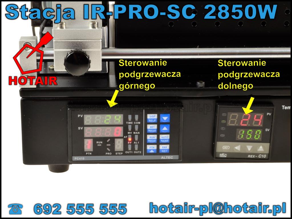 - IR-PRO SC wyróżnia się przyjazną, łatwą obsługą nawet bez komputera. Stacja umożliwia niezależne ustawianie temperatury dla dolnej i górnej grzałki oraz jej śledzenie w czasie rzeczywistym, mamy możliwość nastawienia alarmów przekroczenia zadanej temperatury.