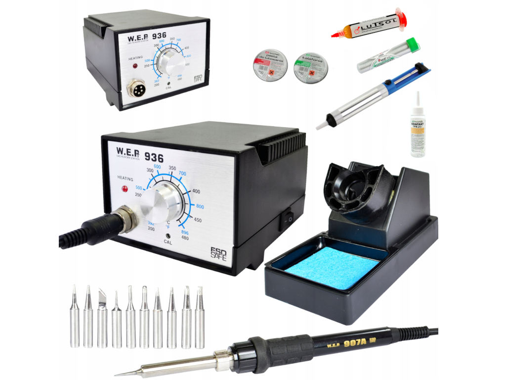 Stacja lutownicza grotowa WEP 936 60W+ kolba 907A z grotem cienkim T-I + komplet dodatków
