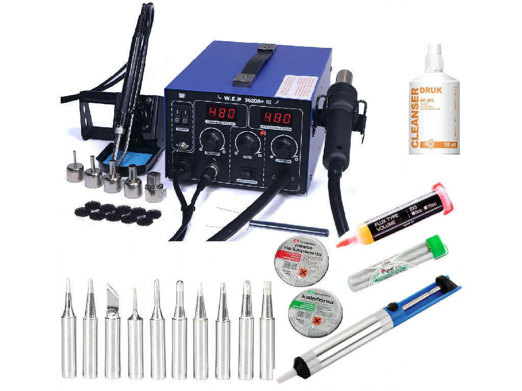 SET721 Stacja lutownicza 2 w 1 WEP 968DA+III + komplet dodatków