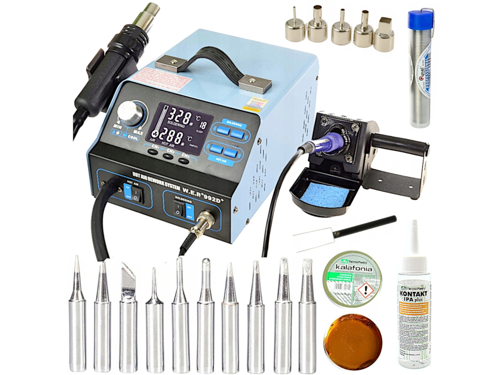 Stacja lutownicza WEP 992D+ to stacja lutownicza 2w1 na:
