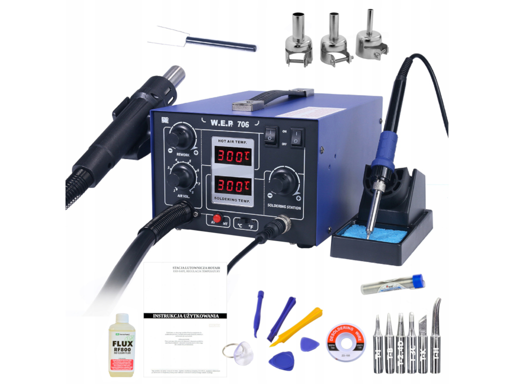 Stacja lutownicza WEP 706 to 2w1 hotair + grotówka z systemem Twin Turbo+DODATKI