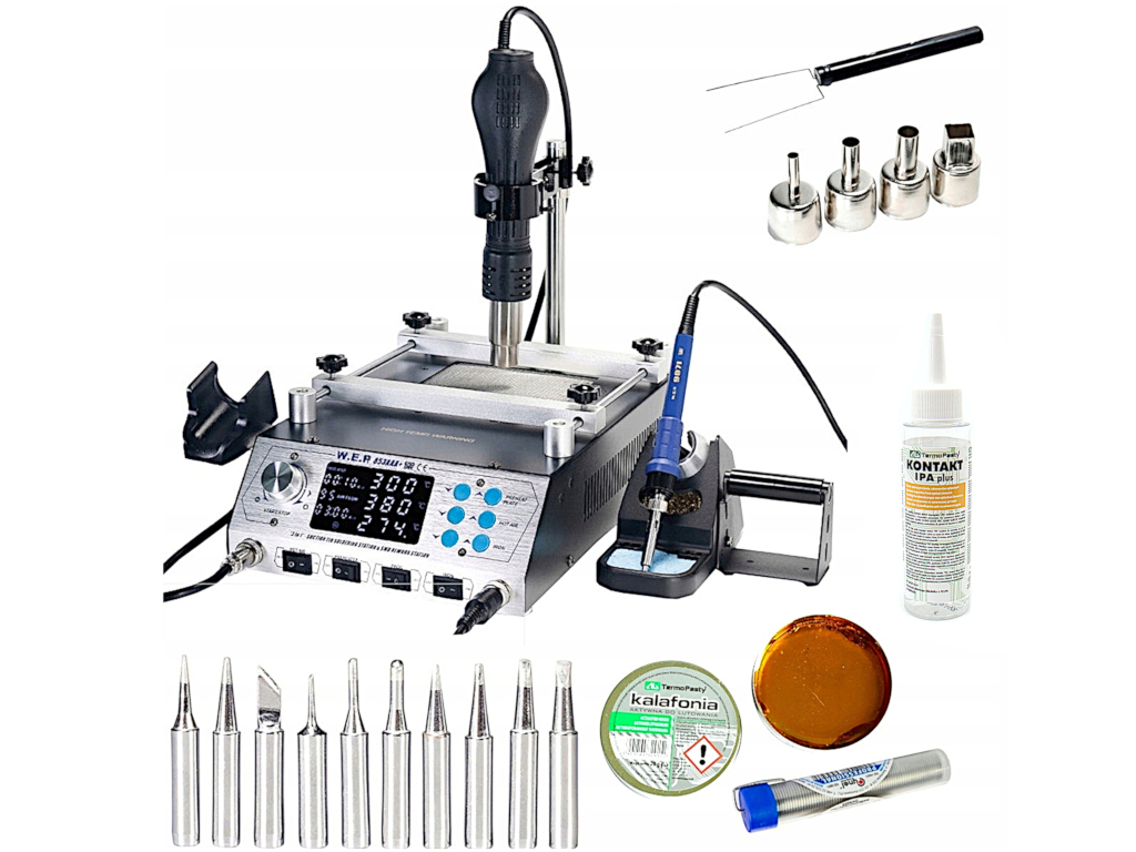WEP 853AAA+ to stacja lutownicza hotair, lutownica grotowa o mocy szczytowej 72-75W i podgrzewacz o mocy 600W