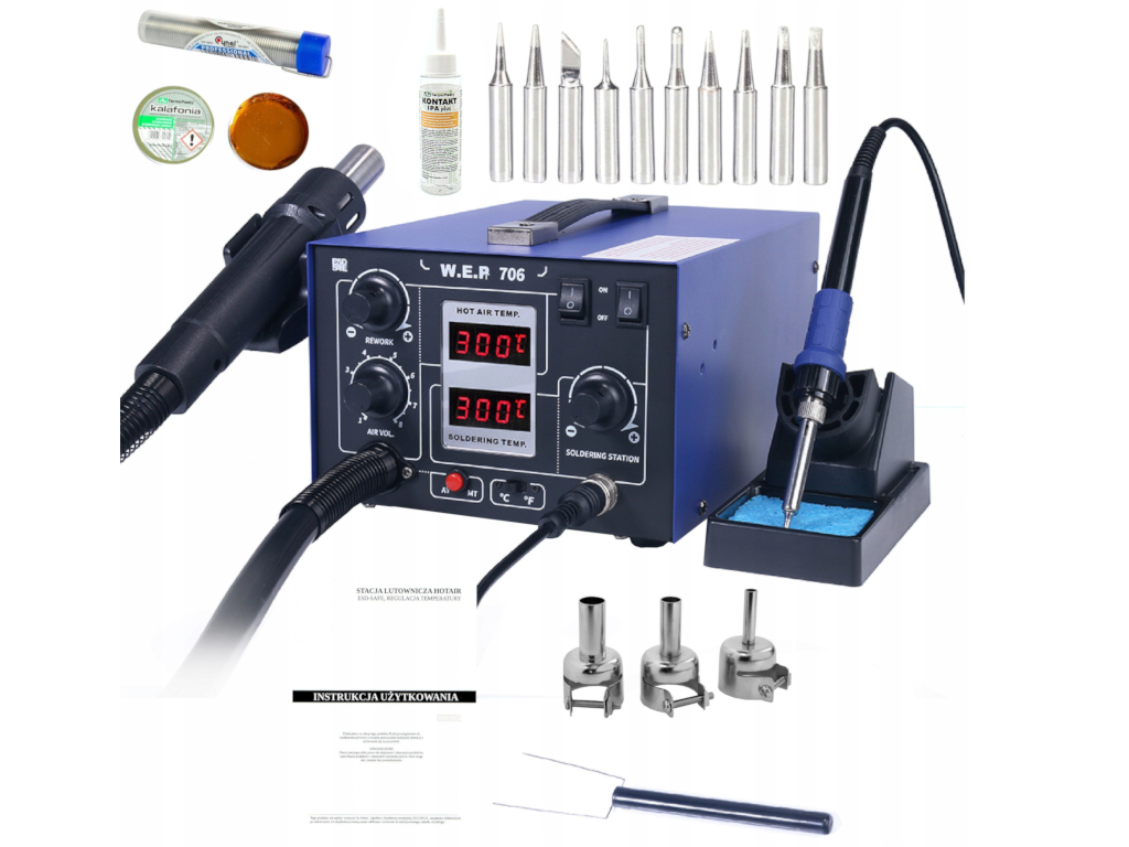 | Stacja lutownicza WEP 872D+ groty flux 223 cynaStacja Lutownicza WEP 872D+ Platforma do PCB 628-I |