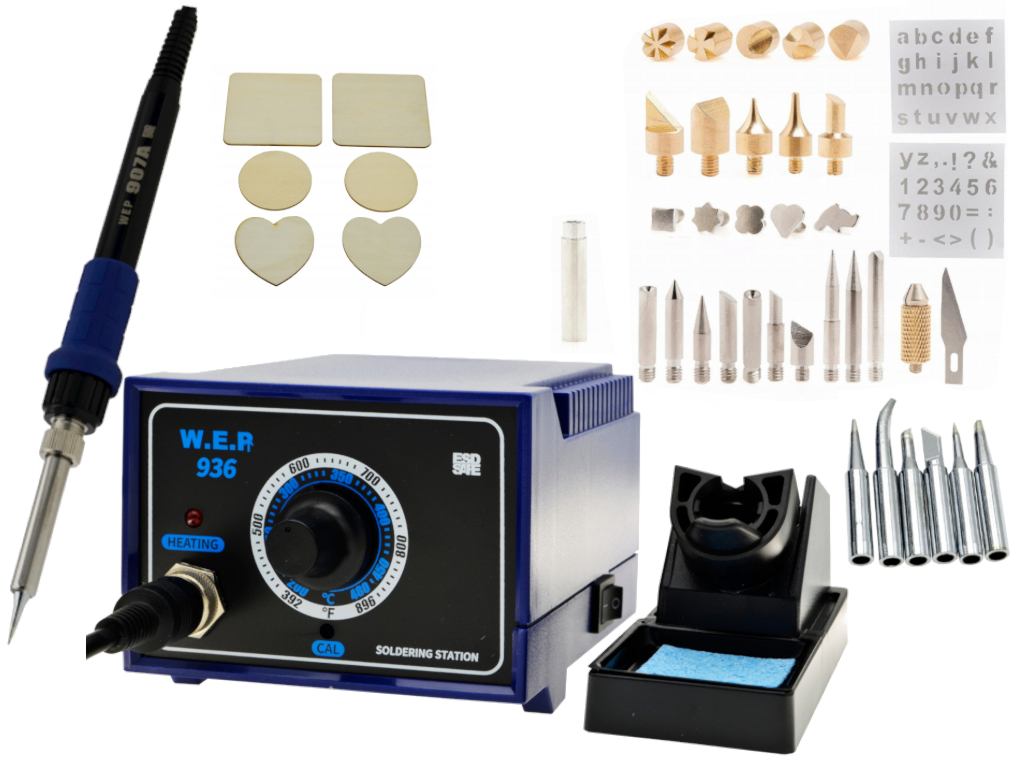 Wypalarka WEP 936 to solidne i niezawodne urządzenie, które doskonale sprawdzi się zarówno w pracach hobbystycznych, jak i profesjonalnych. Prosta konstrukcja w połączeniu z wydajnymi podzespołami zapewnia stabilną pracę oraz długą żywotność. To idealne narzędzie do pirografii, precyzyjnych prac ręcznych oraz zastosowań serwisowych. Urządzenie zostało wyposażone w trwały element grzejny oraz wysokiej jakości groty, co przekłada się na szybkie nagrzewanie i efektywną pracę. Szeroka kompatybilność z grotami serii 900M znacząco zwiększa jego uniwersalność, umożliwiając dopasowanie narzędzia do różnych zastosowań. Model WEP 936 cieszy się dużą popularnością, co gwarantuje łatwy dostęp do części zamiennych, takich jak groty, grzałki czy kolby. Dzięki temu urządzenie pozostaje funkcjonalne przez długi czas, nawet przy intensywnym użytkowaniu. Najważniejsze cechy produktu: